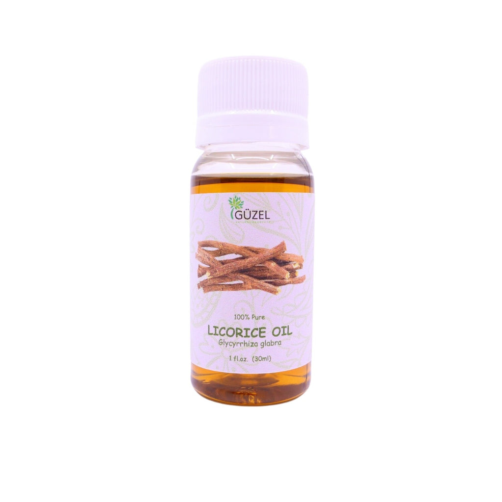 Licorice oil can help in skin lightening, adding glow, fighting blemishes, lightening dark spots and pigmentation. It also has amazing hair benefits like fighting dandruff, boosting hair growth, adding shine, strengthening hair follicles etc.